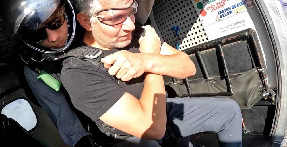 It was here that I met my new found friend and protector, Hank Burnett, the tandem jump instructor. What a fantastic guy. He shook my hand, strapped the skydiving harness on me, gave me a quick "how to jump lesson"; within 15-20 minutes we were on the plane. No how-to videos; just, we're gonna be fine. I did ask if anyone has ever chickened 🐣out. Hank's response: "In over 900 jumps nobody has ever not jumped. Don't you be the first".